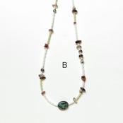 BOHOっぽいカラーのビーズや天然石に、程よく存在感のあるトップが目を引くデザインです♡