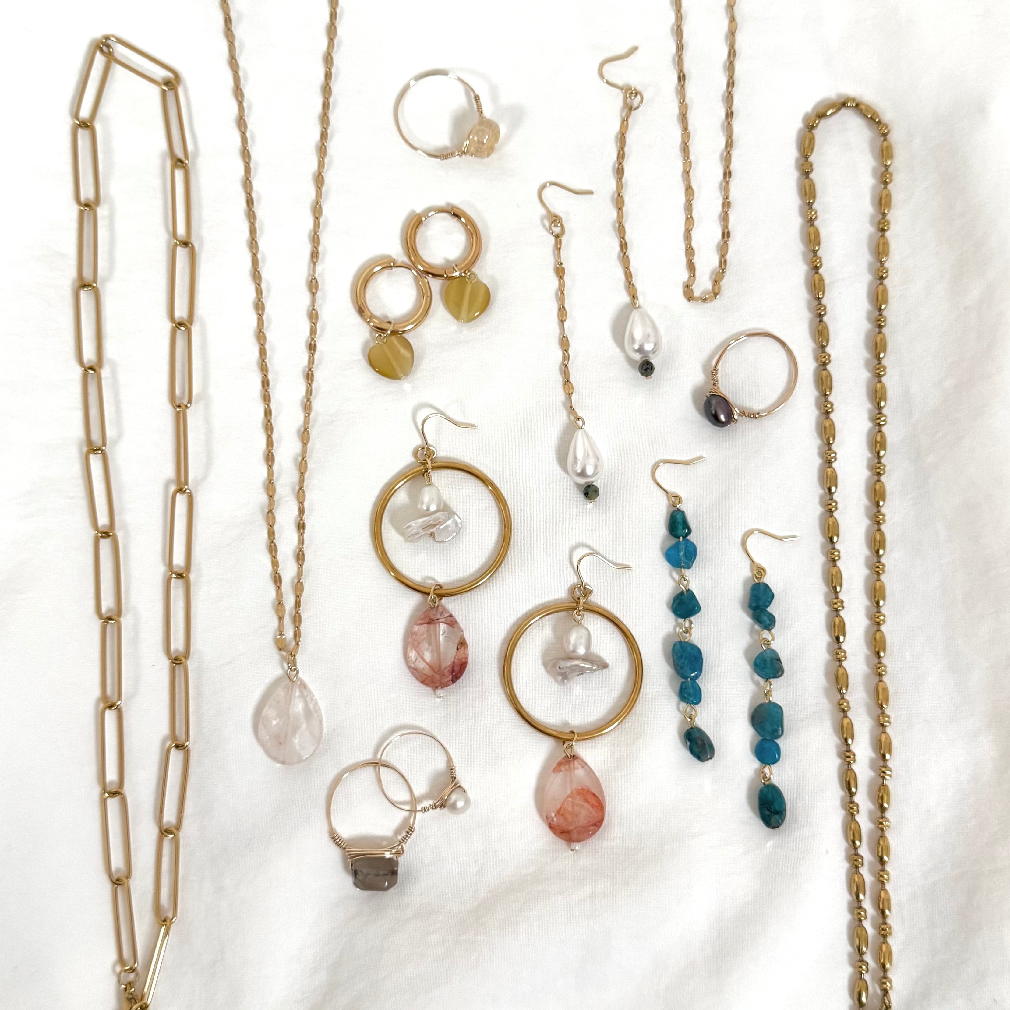 雫型のレッドヘマタイトをメインに使用したフープピアス。